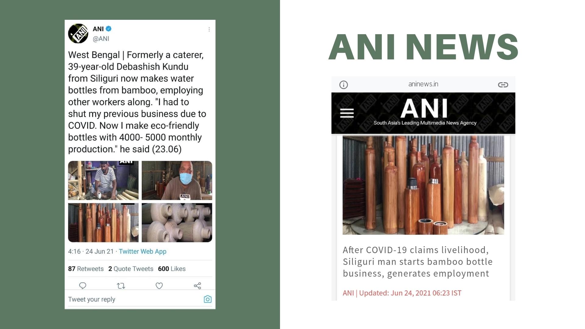 ANI: After COVID-19 claims livelihood, Siliguri man starts bamboo bottle business, generates employment