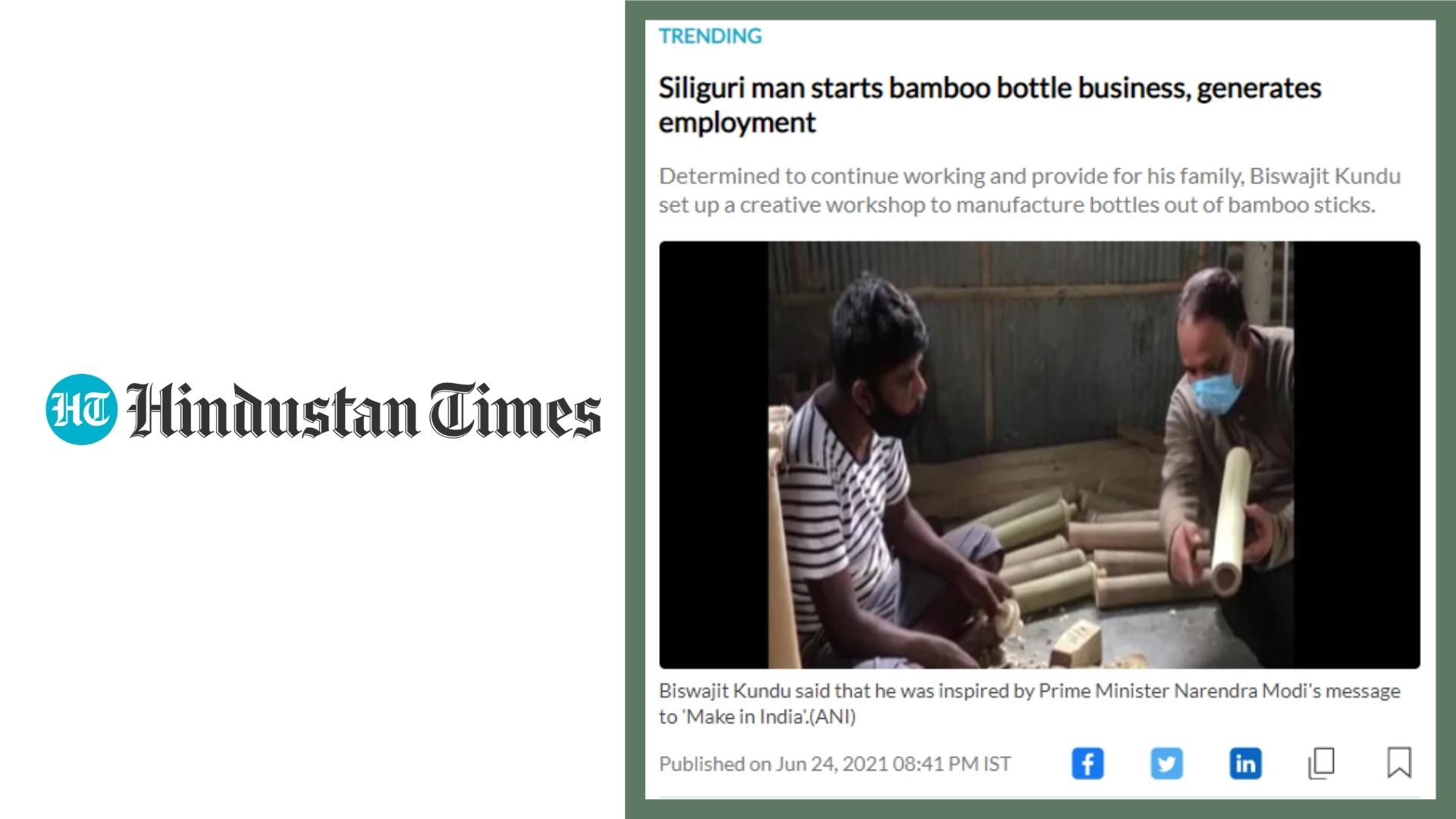 Hindustan Times: Siliguri man starts bamboo bottle business, generates employment