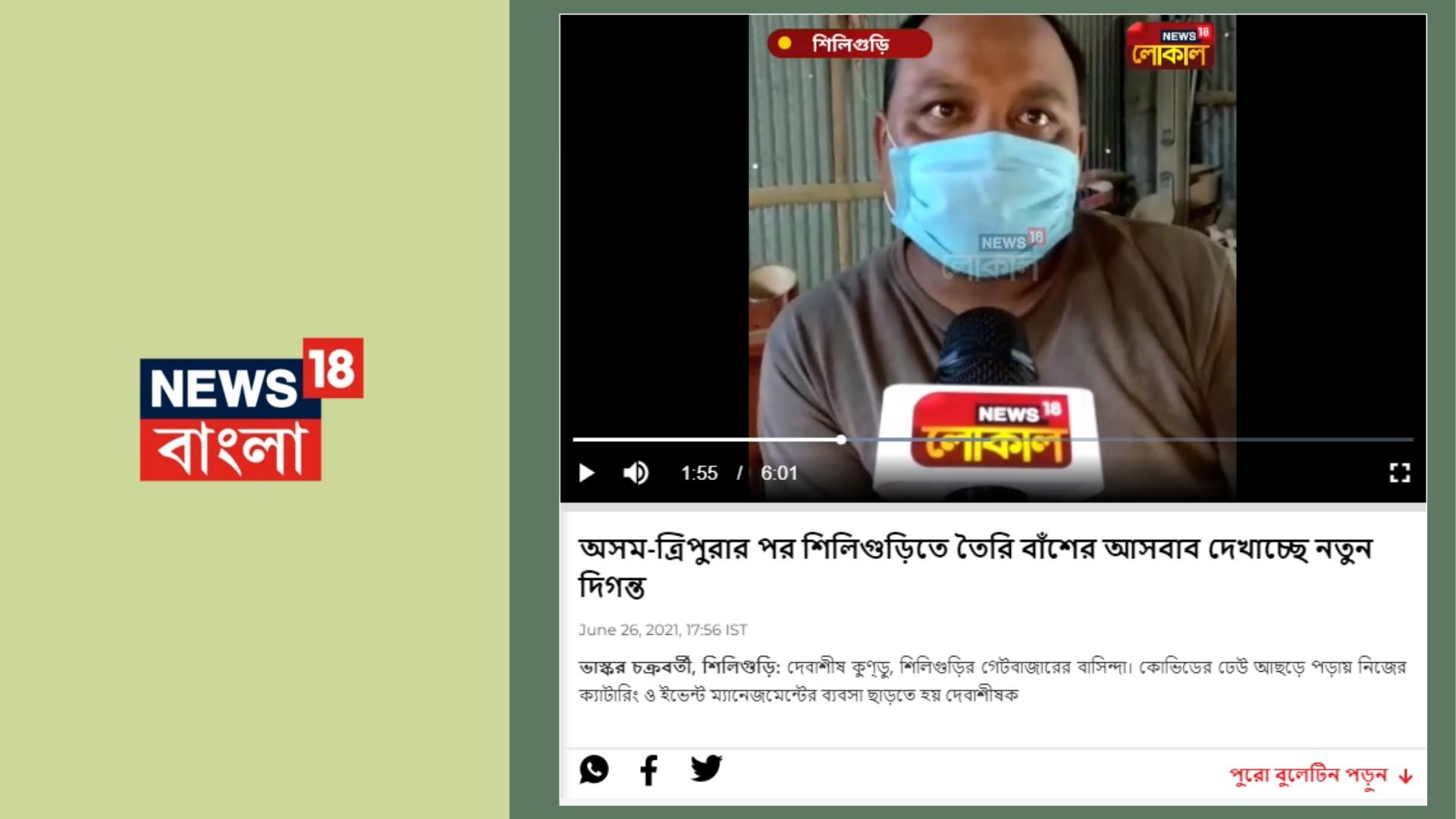 NEWS 18 বাংলা: অসম-ত্রিপুরার পর শিলিগুড়িতে তৈরি বাঁশের আসবাব দেখাচ্ছে নতুন দিগন্ত