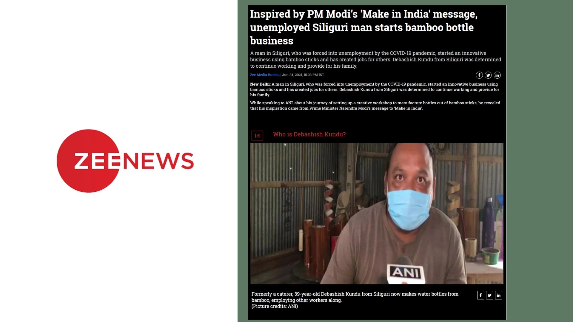 Zee News: Inspired by PM Modi’s 'Make in India' message, unemployed Siliguri man starts bamboo bottle business
